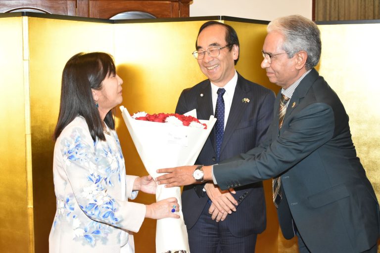 Prof. Dr. Nusrat Ara Majeed, Senior Vice President PJCA, Sardar Omer Durrani, Mr. Zafar Mahmood, Ms. Nigar Nazar, Ms. Rubeena Orita, Mr. Imtiaz Ahmed, former Ambassador of Pakistan to Japan and the Executive Member of PJCA and Mr. Mushtaq Moeeni, Secretary General PJCA attended a heartfelt farewell reception hosted by His Excellency Mitsuhiro WADA, the esteemed Ambassador of Japan to Pakistan yesterday at his residence. The Secretary General of the Pakistan-Japan Cultural Association, have had the honor to present a flower bouquet on behalf of the President PJCA Mr. Jamal Shah and the Executive Committee. PJCA had the honor for working closely with His Excellency and witnessing his tireless commitment to strengthening the bond between Japan and Pakistan.