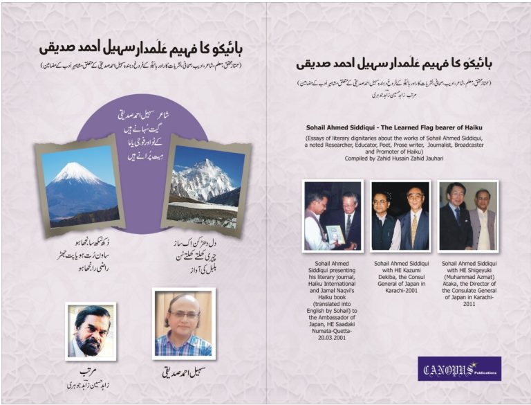 The bilingual book titled “Sohail Ahmed Siddiqui – Haiku ka Fahim Alamdar”, compiled by renowned poet and critic Zahid Hussain Zahid Johri, presents a selection of essays and tributes by prominent national and international scholars, poets, and Japanologists.
