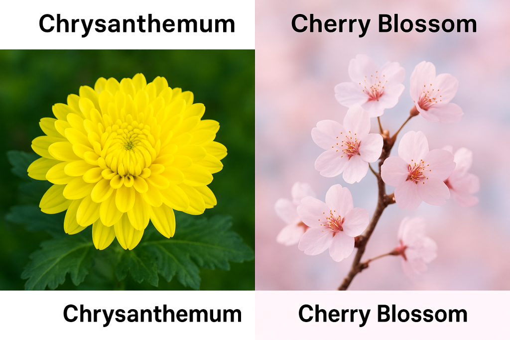 Japan is known for two national flowers, each with its own significance: Chrysanthemum (菊 – Kiku) – The Official Symbol