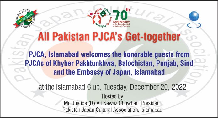 20 December 2022The Pakistan Japan Cultural Association, Islamabad hosted the All-Pakistan PJCA Get-together at Islamabad Club, marking 70 years of