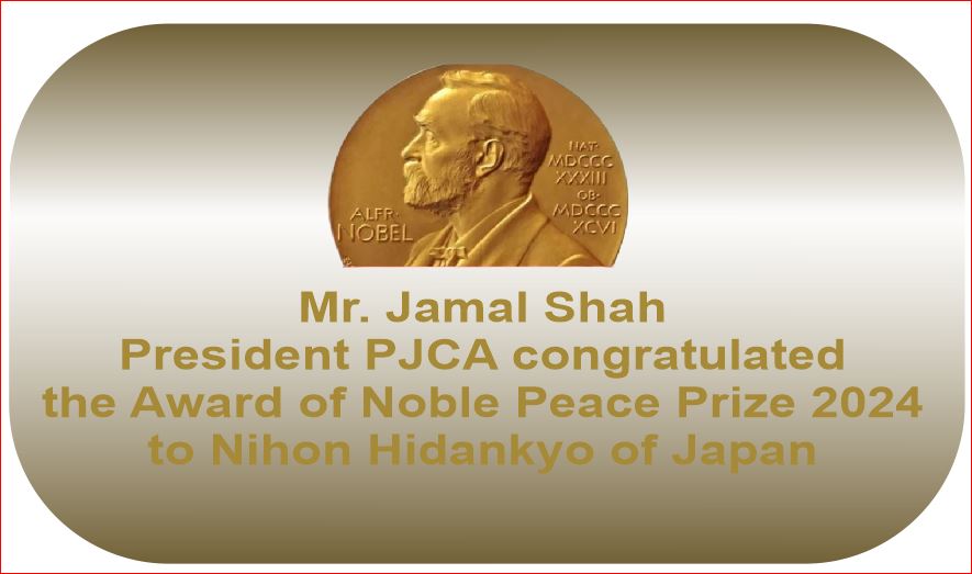 [President PJCA Condoled the Passing of Ms. Nobuyo Oyama] Islamabad, Mr. Jamal Shah, President, the Pakistan Japan Cultural Association (PJCA)